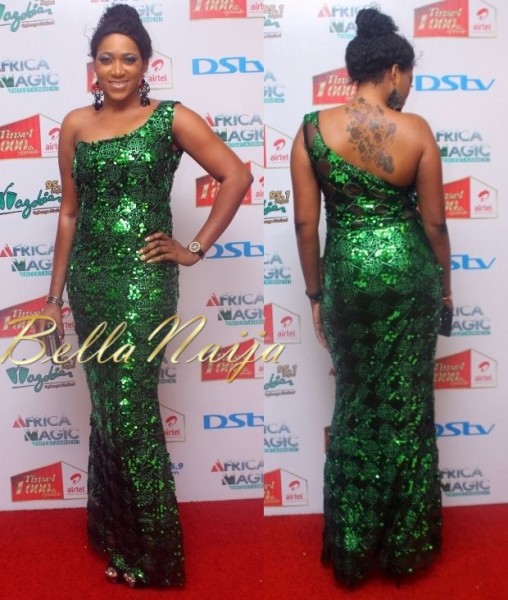 So for your viewing pleasure, i stole some pictures off Bellanaija.com of some Nigerian celebrities wearing sequins (or shine shine aka glittering dresses). I am not even going to say what i feel about that lace front wig and the tattoo on you know who and that blue thing that looks like foil paper.....#lipssealed.