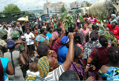 The women and children also blockaded the roads leading to the barracks with stones and sticks, while some sat in front of the barracks’ gate.