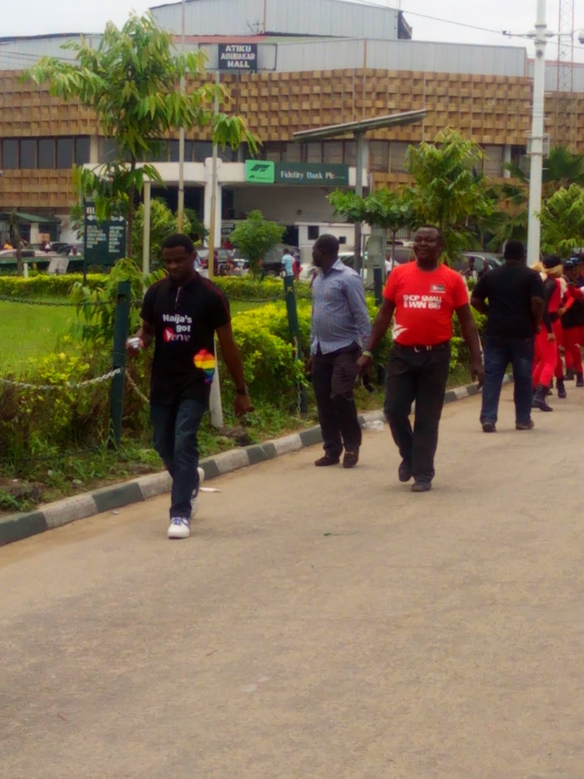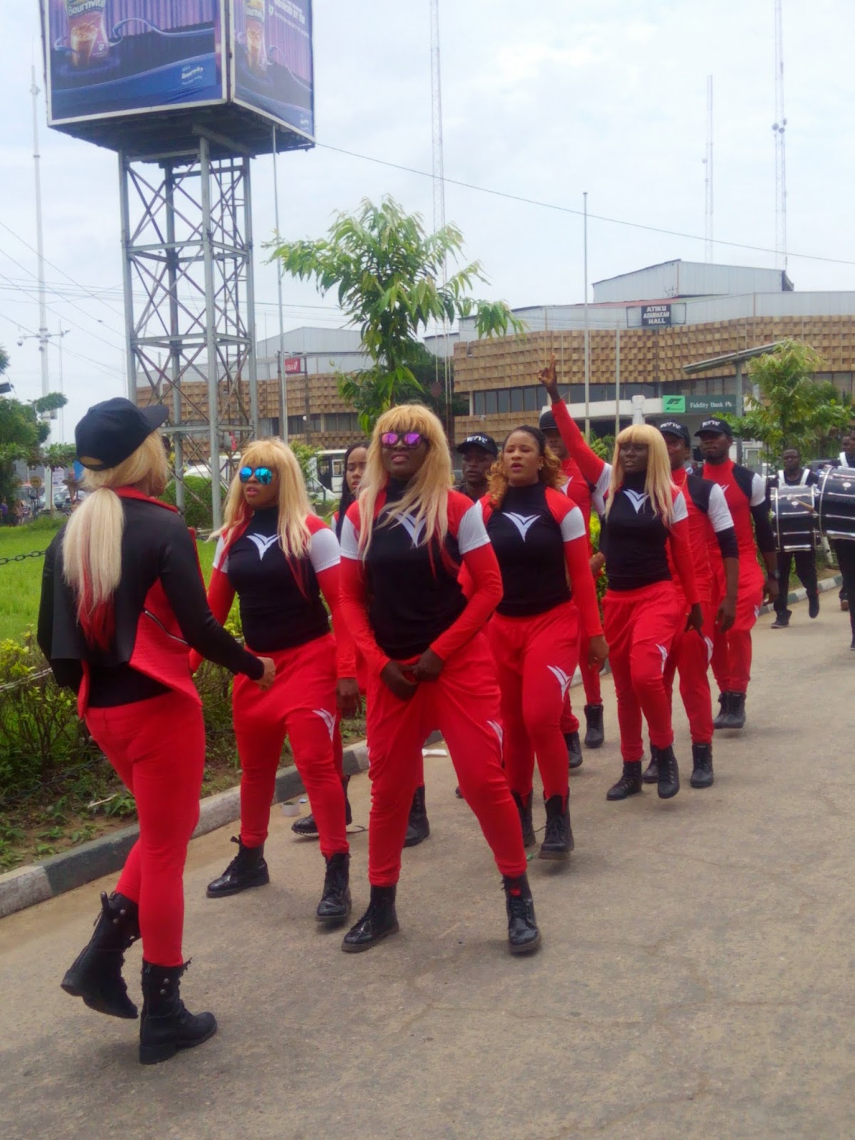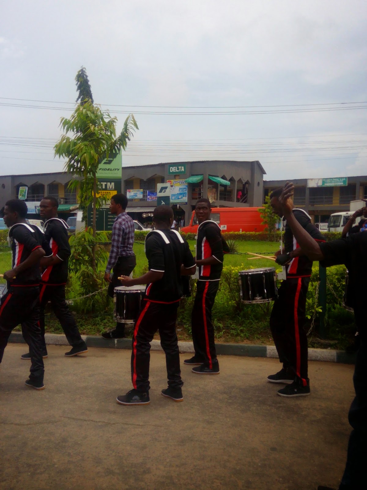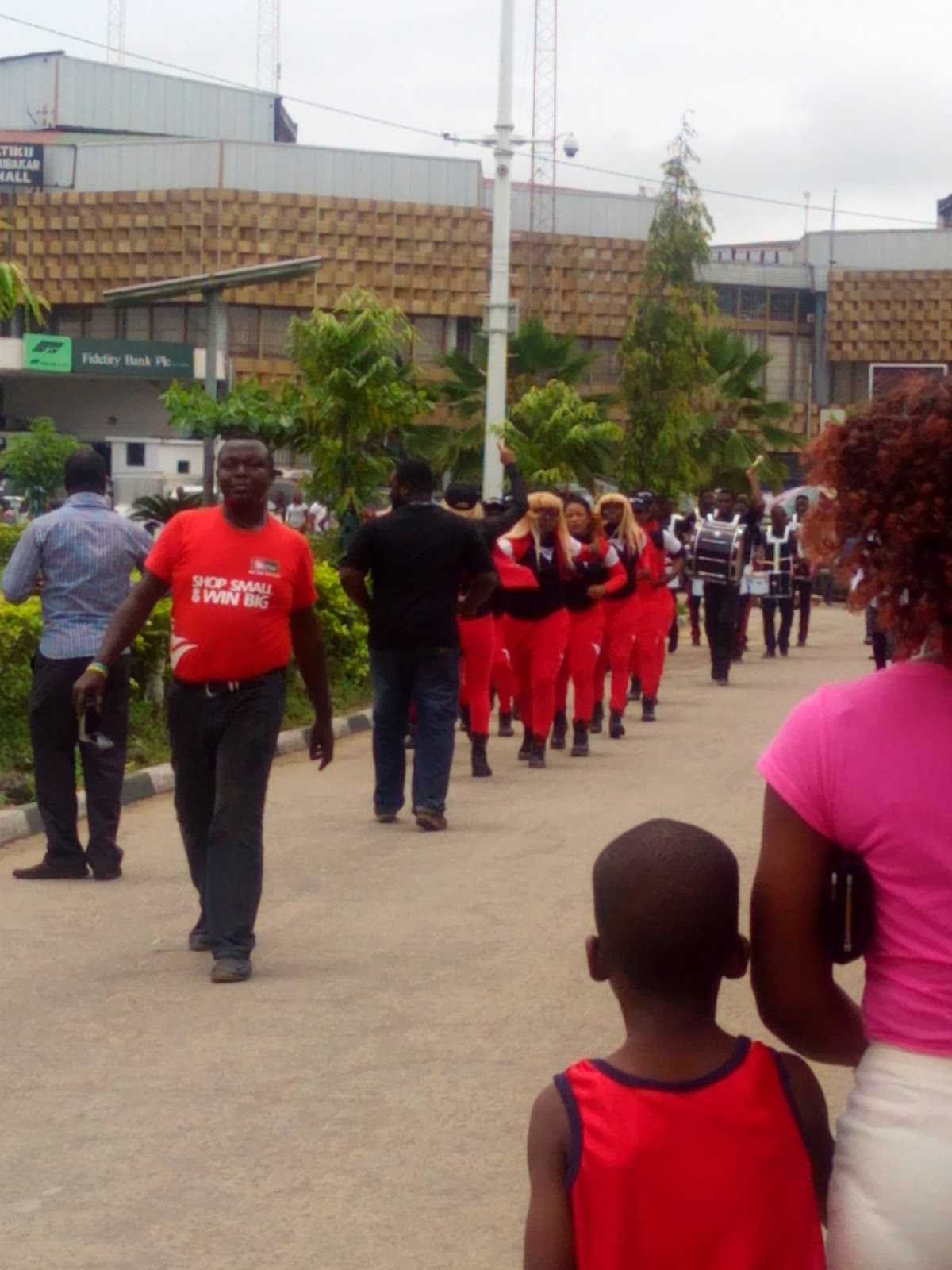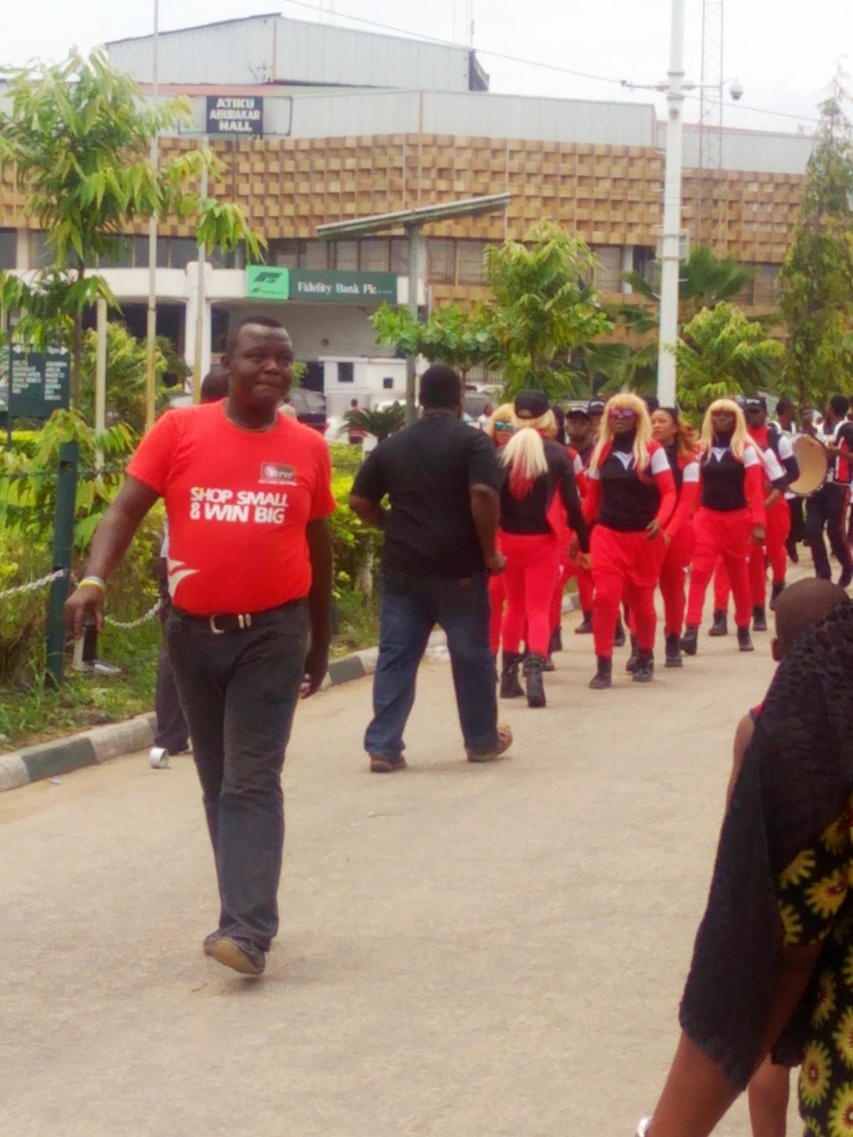 So where was i? Oh, Trade fair. So I saw the mobile display there and decided to do what I came to the complex for first then check out the stand. However when I was through with my business and looked up to the skies, lo and behold the clouds were really dark. It looked like the heavens were going to open very soon and pour like crazy. And I am so tired of being beaten by the rain. I practically ran out of there. I wasn’t going to allow my curiosity to cause me to be drenched again. So I wasn’t able to check the stand out to even know what was involved but I was able to take some pictures of the dancers/band that the company was using to create some publicity in the complex.