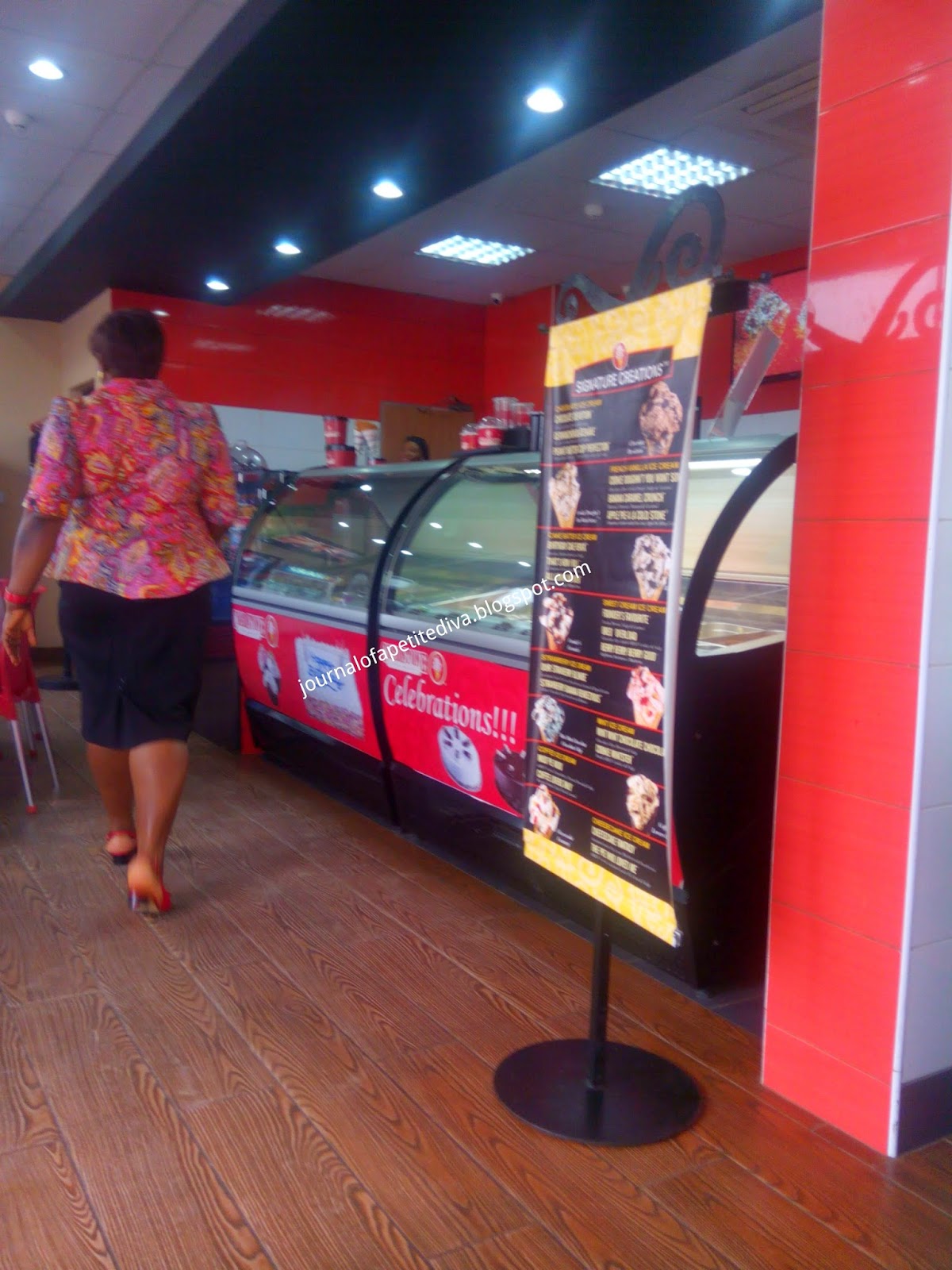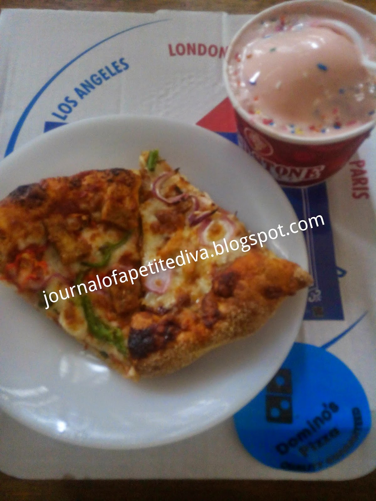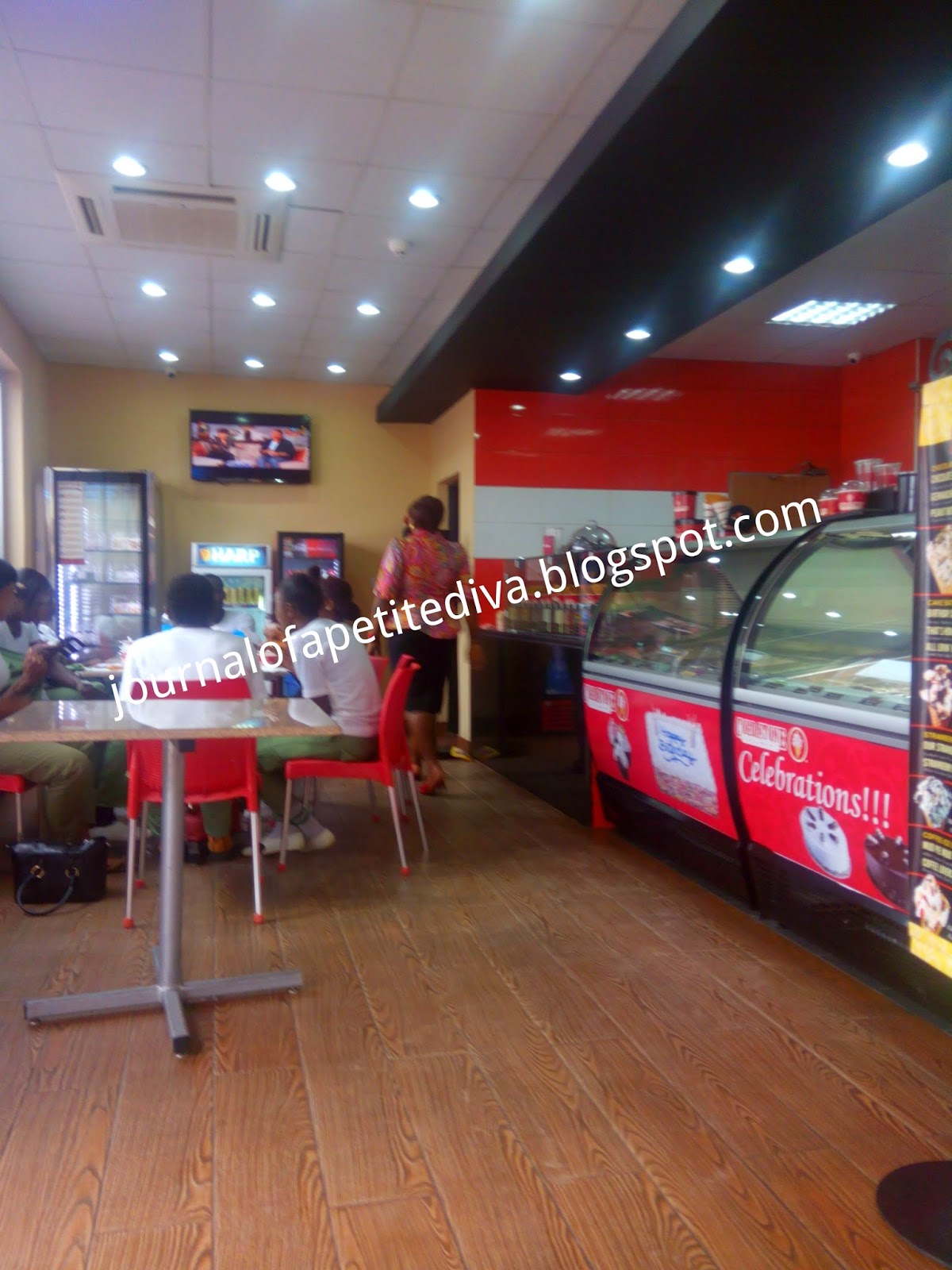 So to comfort myself, i took a trip to a pizza joint in Festac town and went to get some smoking hot pizza. I also got myself strawberry and chocolate ice cream with sprinkles from Cold stone creamery. Check out my pictures: