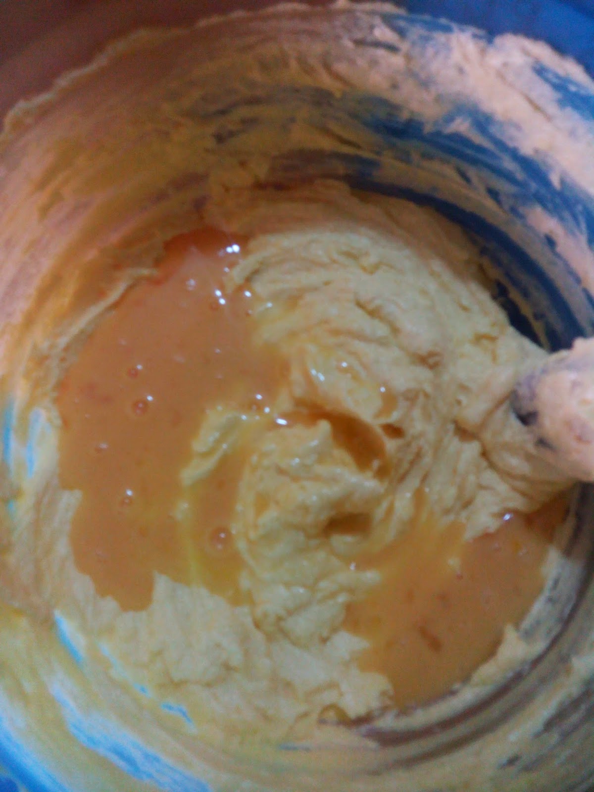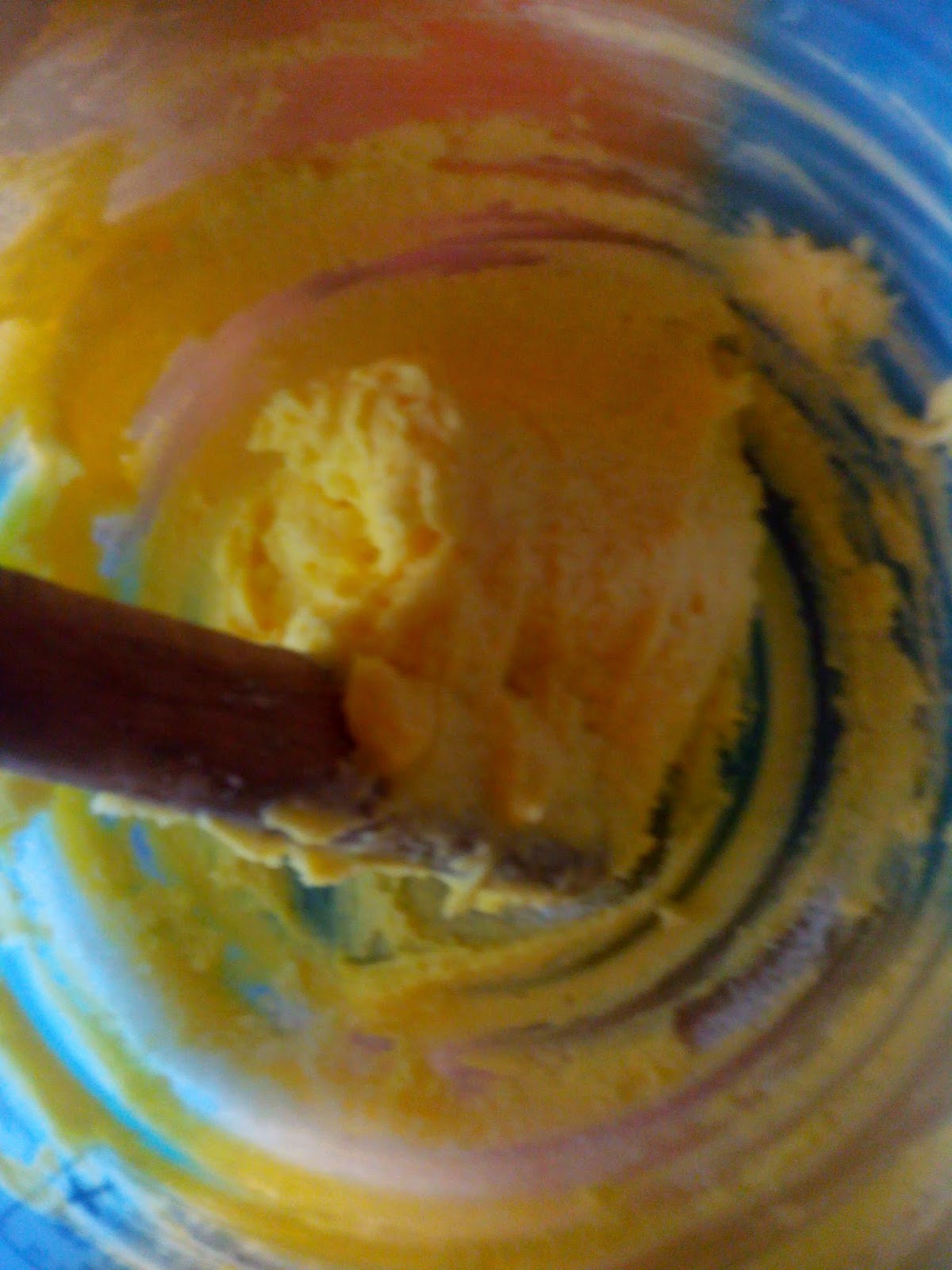 Cream the margarine and sugar till it is really fluffy. I mixed till I couldn't anymore. I don't have an electric mixer and I couldn't continue creaming until it was really fluffy.